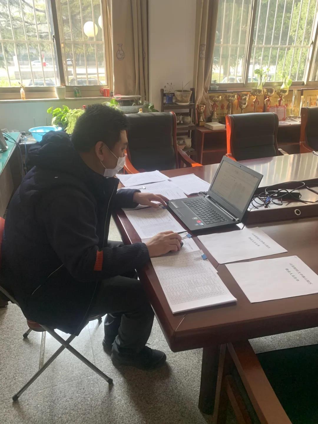 据总务处处长杜瑞云老师介绍,薛老师为了保证上报数据的准确性、及时性,每天加班加点,饿了就吃口方便面,累了就在办公桌趴一会儿。特别是初期,白天入户排查,晚上整理数据,每天休息时间不到 4 小时,有时甚至通宵加班。为了保证工作的专责和连续性,他坚持一个人负责到底。