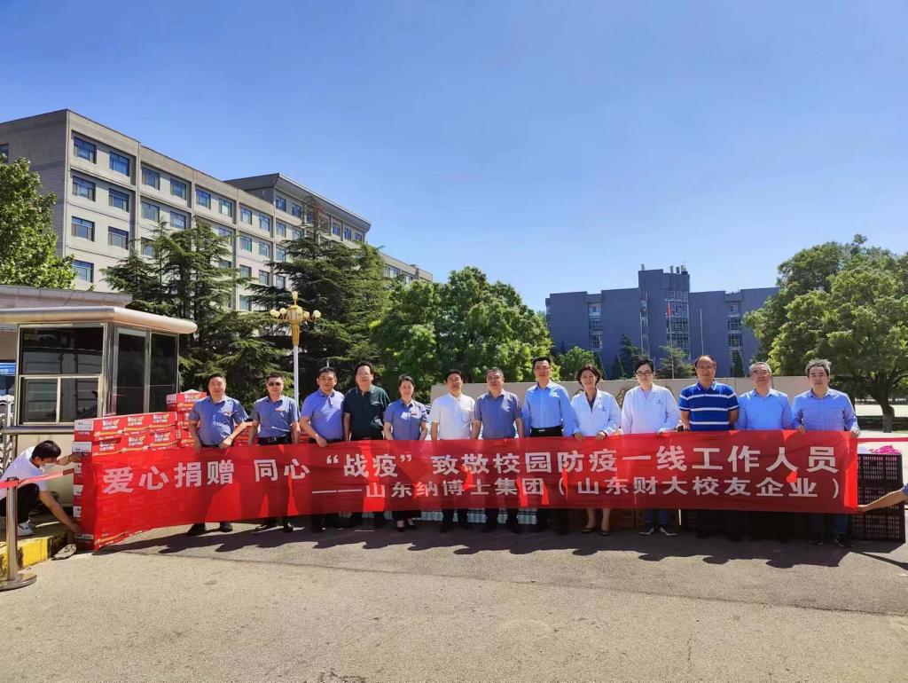 5月5日上午,校友企业山东纳博士集团来到山东财经大学燕山校区,给奋战在防疫一线的医务工作者送上方便面、矿泉水、 水果等慰问品,表达爱心企业对奋战在防控疫情一线工作人员的深情敬意。合作发展处、总务处负责人及部分医务人员代表参加了捐赠仪式。