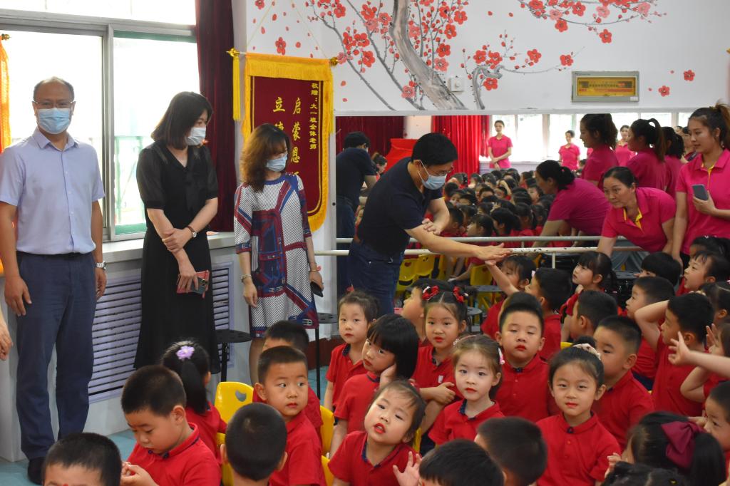 6月1日上午,校长赵忠秀、副校长张培国到幼儿园看望慰问幼儿教师和小朋友,并为他们送上节日的祝福。