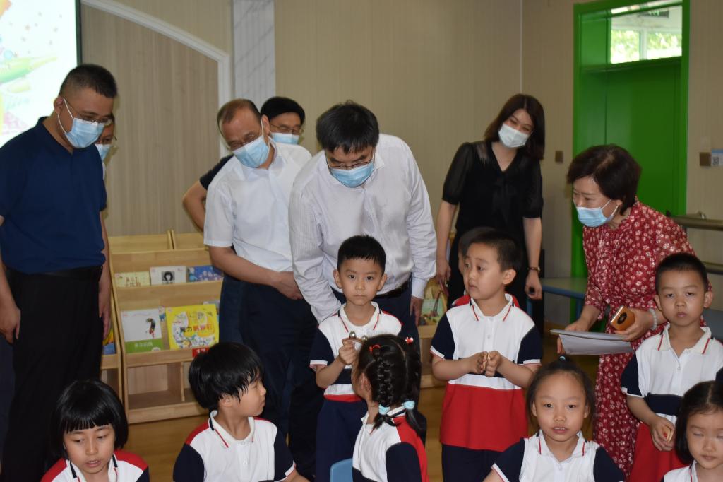 赵校长一行严格遵守幼儿园防疫规定扫场所码进行登记入园,并与正在做核酸的小朋友进行了互动。随后校领导观看了孩子们的六·一节目,并与孩子们一起合影留念。总务处处长鲁天鑫,幼儿园园长张静、王彤彤向赵忠秀校长汇报了幼儿园的工作开展情况。校长赵忠秀充分肯定了幼儿园当前的工作,要求幼儿园的建设要开拓眼界和思路,注意吸取其他优秀幼儿园的教育理念和先进经验,努力将山财大幼儿园建设成为学校的品牌和名片。他强调,幼儿教育是国民教育体系的组成部分,是孩子智力开发的最佳期、人格健全的关键期,一定要遵循教育规律,尊重儿童身心发展特点,注重习惯的培养和人格的塑造,同时要主动与家长做好沟通,听取家长的意见建议。