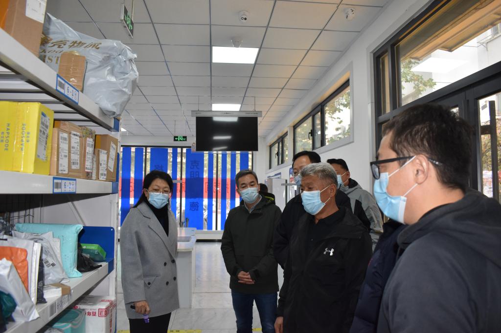 在燕山校区快递服务中心,张红霞指出,要围绕如何既让师生快速领取快递又减少人员聚集等问题进行细致研究。要做到服务和疫情防控两不误。她要求:一是快递上架之前要进行分类,杜绝一放了之,要对快递件进行简洁明确的标记方便寻找。二是要做好快递件到校后的静置和消毒。三是安排专门工作人员进行取件人员分流,尤其是“双十一”快递件相对集中,必须彻底杜绝人员聚集现象。四是要加强对员工管理,严格执行济南市有关规定。她强调,要把防疫工作深入扎实的做深、做细、做实,总务处要切实履行好监管职责,确保防疫安全到位的同时快递服务水平质量有显著的提升。