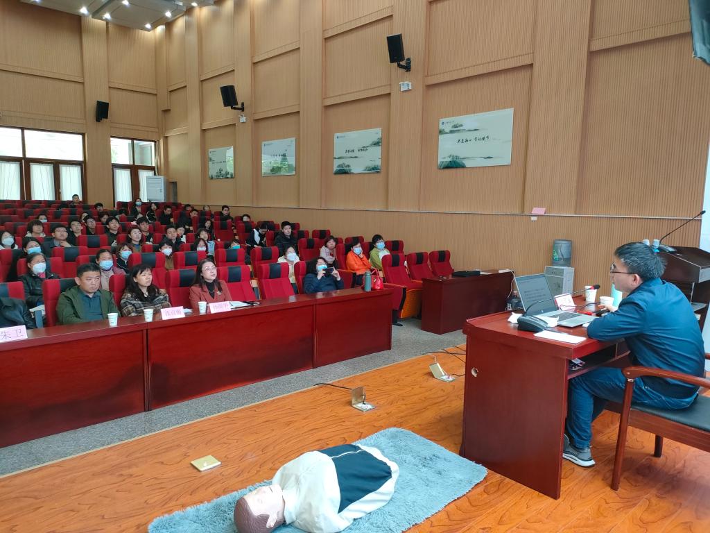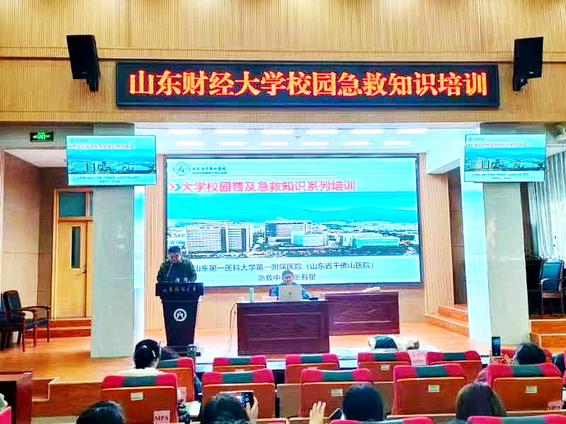 为进一步普及急救知识,提高师生应对突发事件和意外伤害事故的应急救护和自救互救能力,推进平安校园建设,4月25日下午,2023年校园应急急救知识培训班举办。本次培训由山东第一医科大学第一附属医院(山东省千佛山医院)急救中心副主任医师、医学博士张有星主任主讲,校医院院长薛鹏主持,学校党委学生工作部、党委保卫部和总务处等相关职能部门负责人及各学院辅导员、学生代表百余人参加。