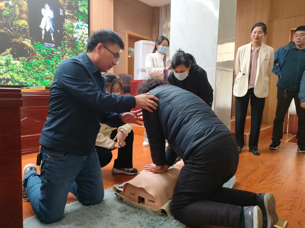 本次培训采取理论讲授、模拟演练、现场交流相结合的方式进行,深入浅出地围绕黄金四分钟急救、救护现场情况研判、徒手心肺复苏、日常突发意外等基本急救知识进行了生动的讲解;同时,对AED的使用、海姆立克急救法等内容进行了现场演示,并和学校师生开展深入互动,指导他们进行现场演练,帮助他们在最短的时间内掌握基本的急救技巧。