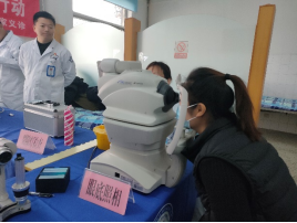 活动现场,医生们为患者进行视力检查、电脑验光、眼底照相、裂隙灯检查和眼压检查等眼科常规检查,针对人群中常见的眼部疾病如干眼症、结膜炎和麦粒肿等,讲解了形成原因及注意事项,并就如何养成正确的用眼习惯、控制近视等内容为教职工进行科普,如增加户外活动时间,注意眼部卫生,减少电子产品使用时间,保证充足睡眠时间等。
