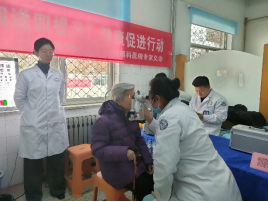 山东中医药大学附属眼科医院医师为教职工做眼部检查