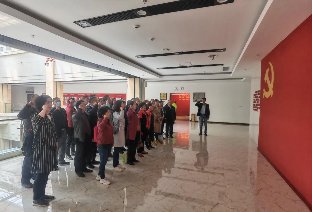 参观结束后,全体党员面对庄严的党旗,举起右手、紧握拳头,重温入党誓词,表达对党的忠诚与信仰。